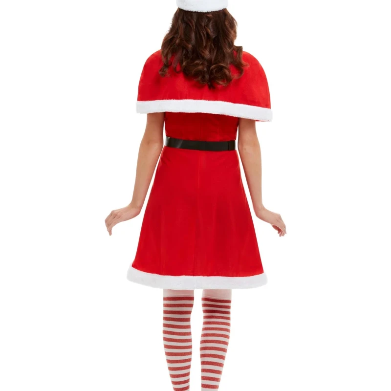 Miss Santa Costume, Red, with Dress, Hat & Cape.
