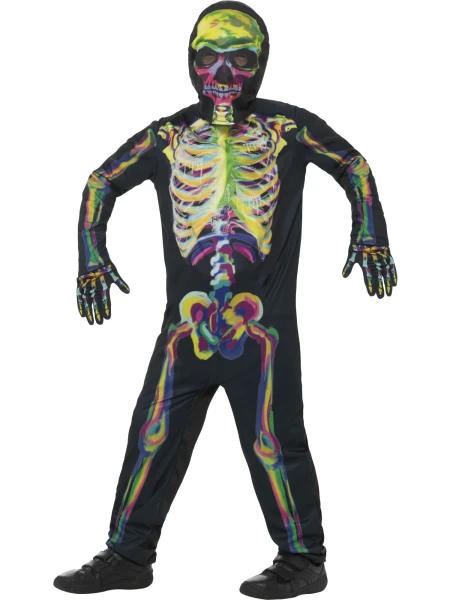 Glow in the Dark Skeleton Costume, Multi-Coloured, with Bodysuit, Mask & Gloves.
