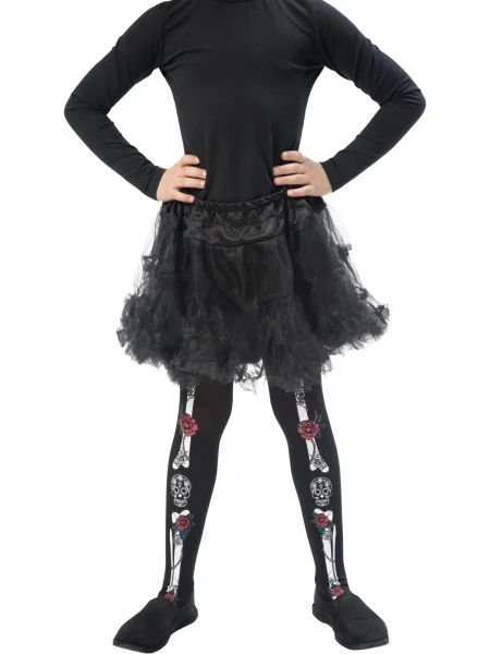 Day of the Dead Tights, Child, Black. SIZE 6 TO 12 YEARS